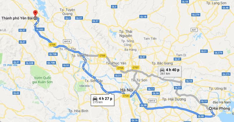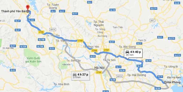 Nên chọn tuyến đường nào để đi từ Hải Phòng đến Yên Bái nhanh nhất?